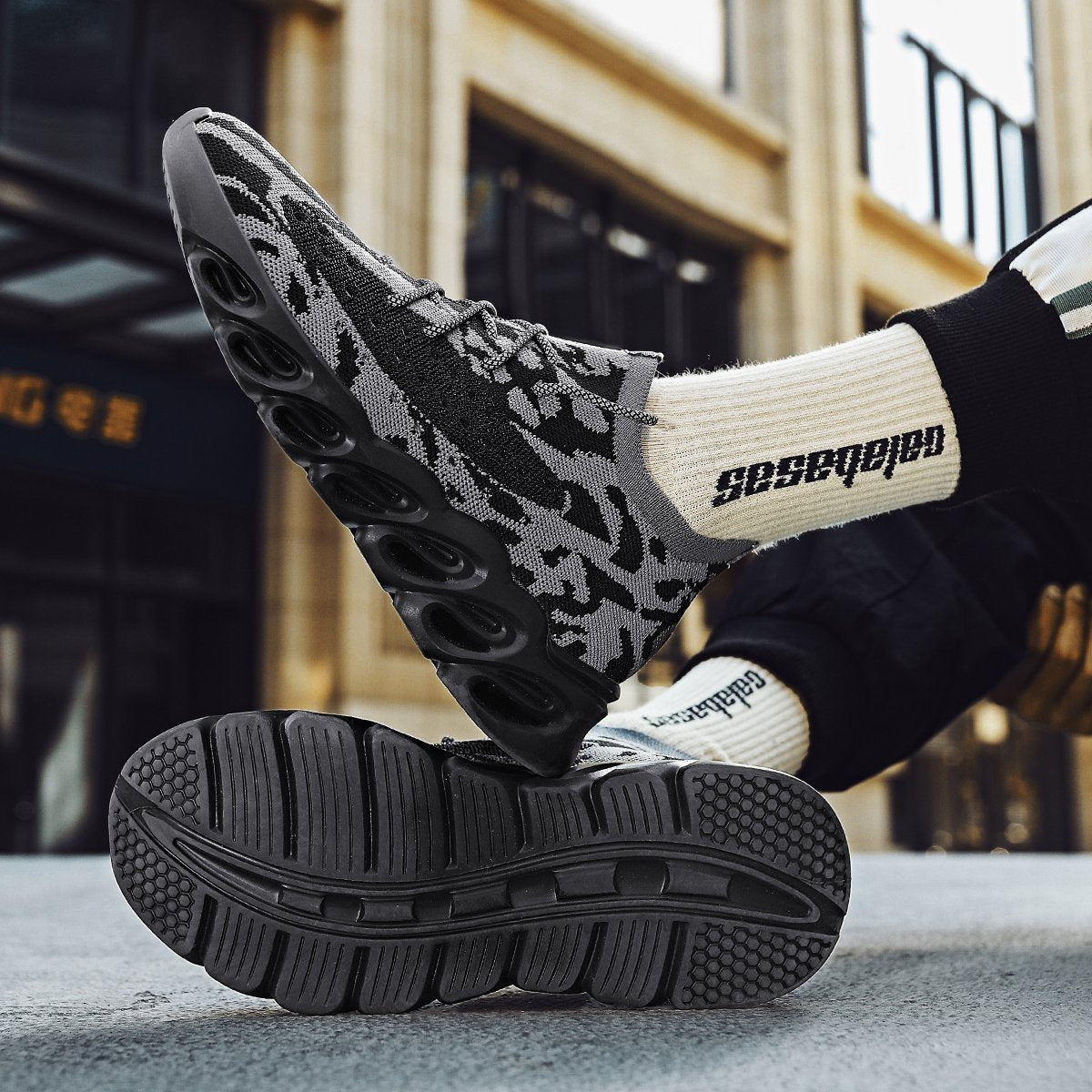 - Unique patterned rubber outsole